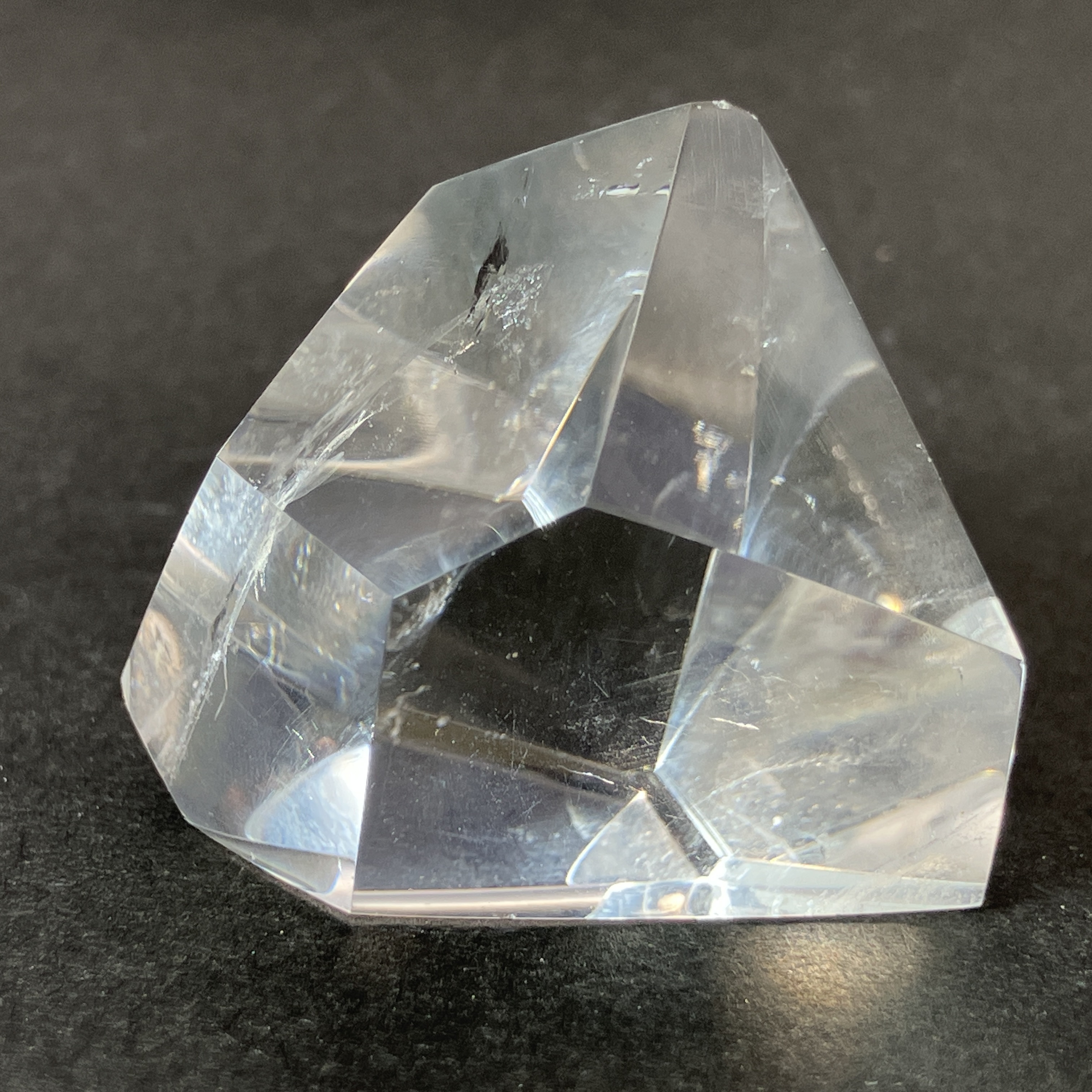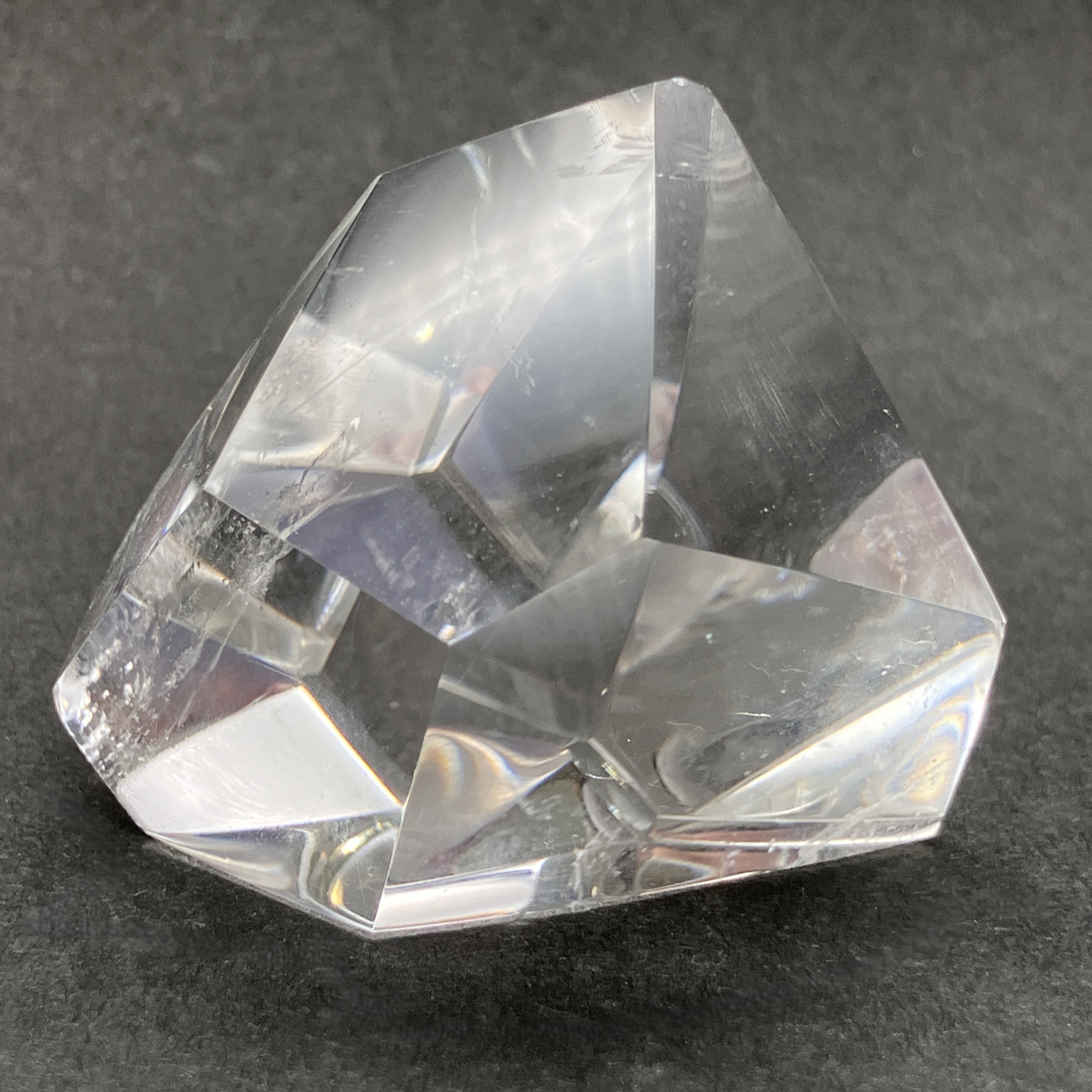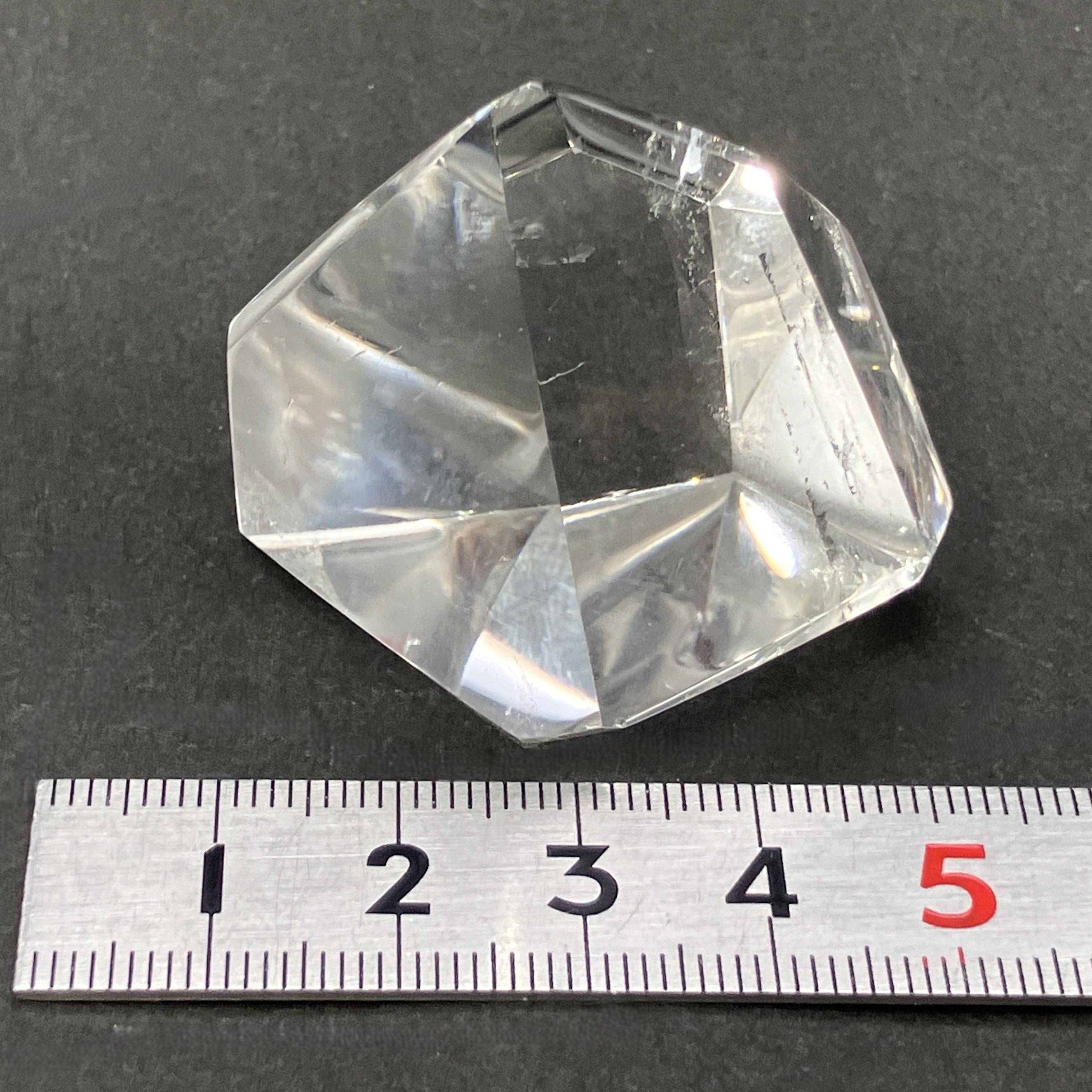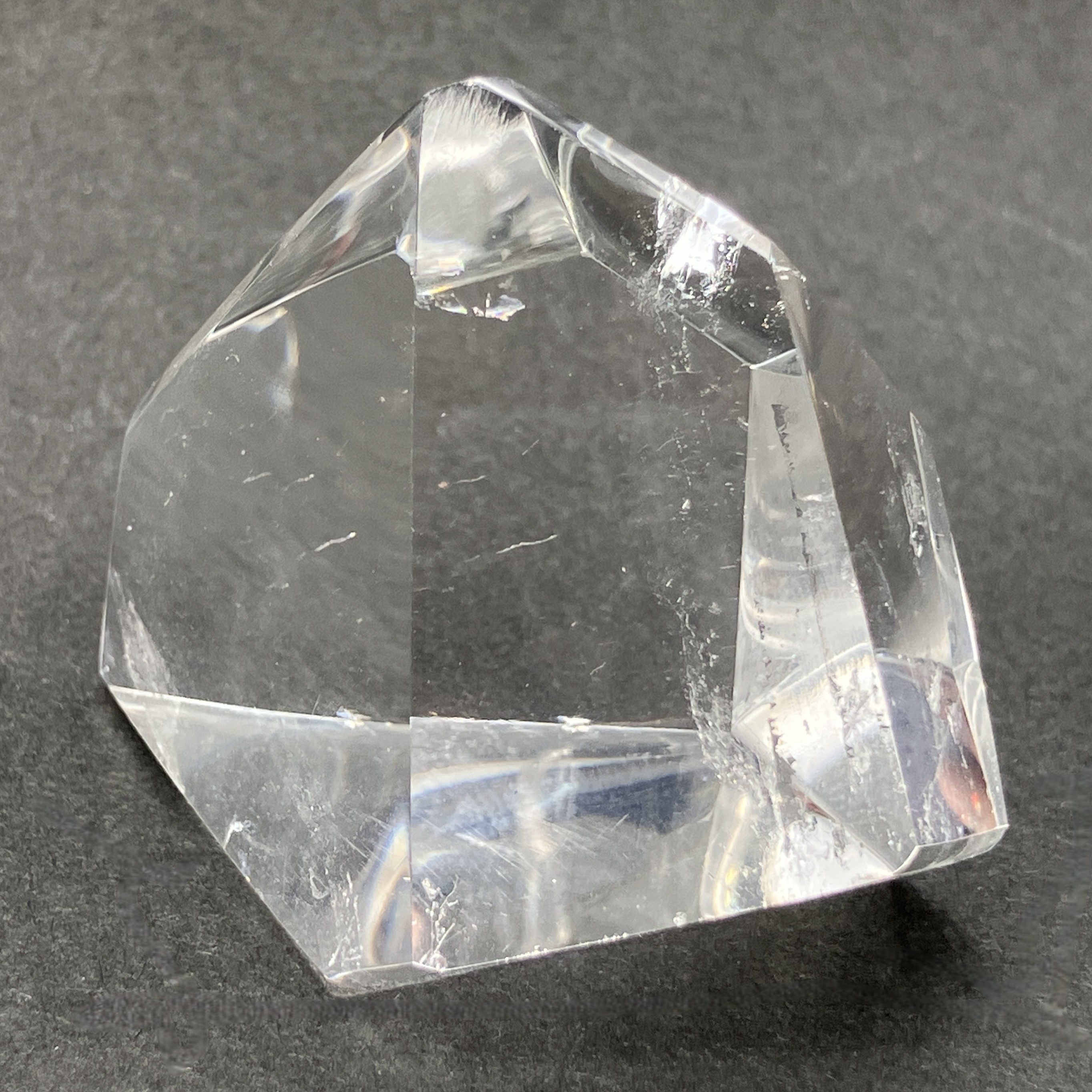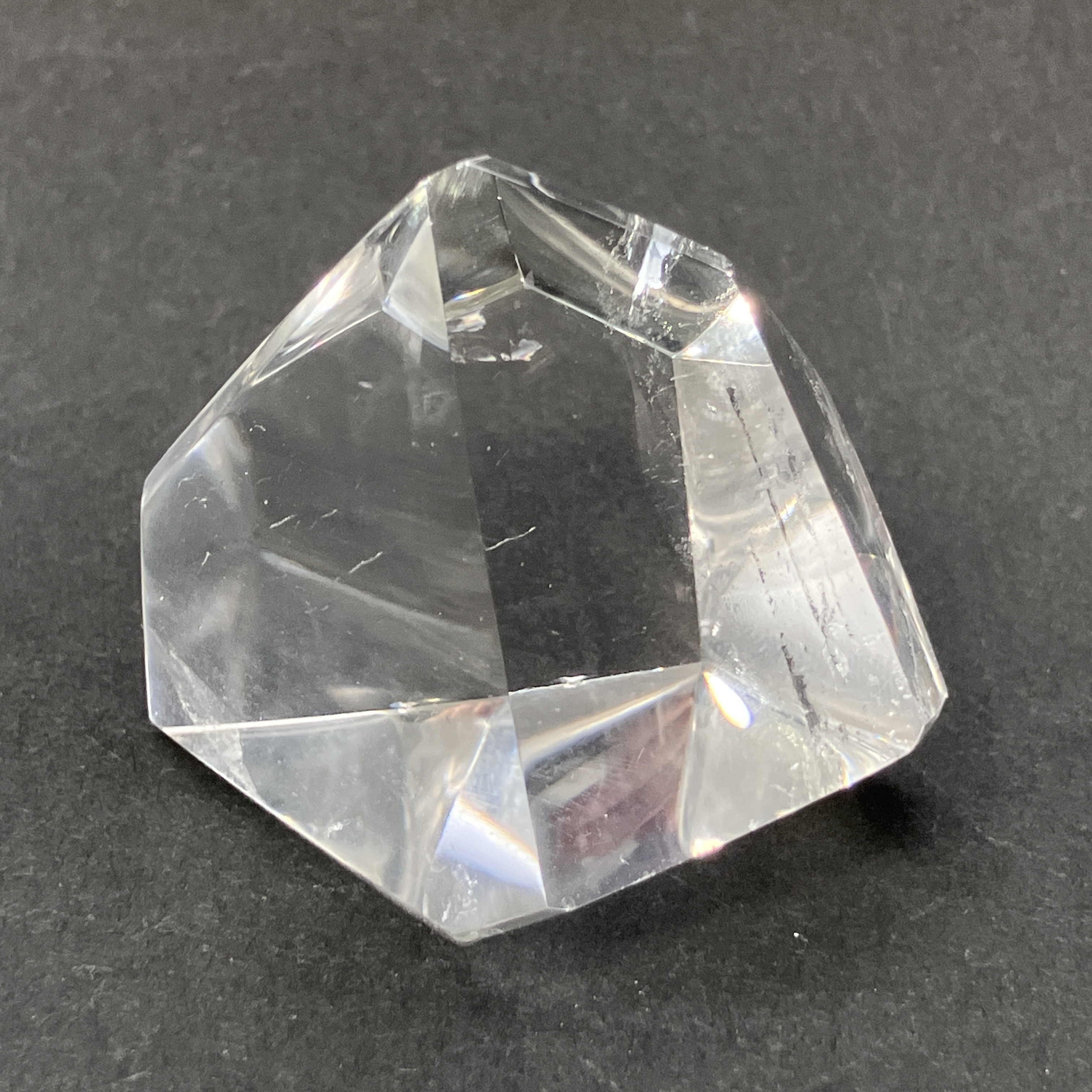 結晶や原石の形に合わせて、不規則な面カットが施された状態。