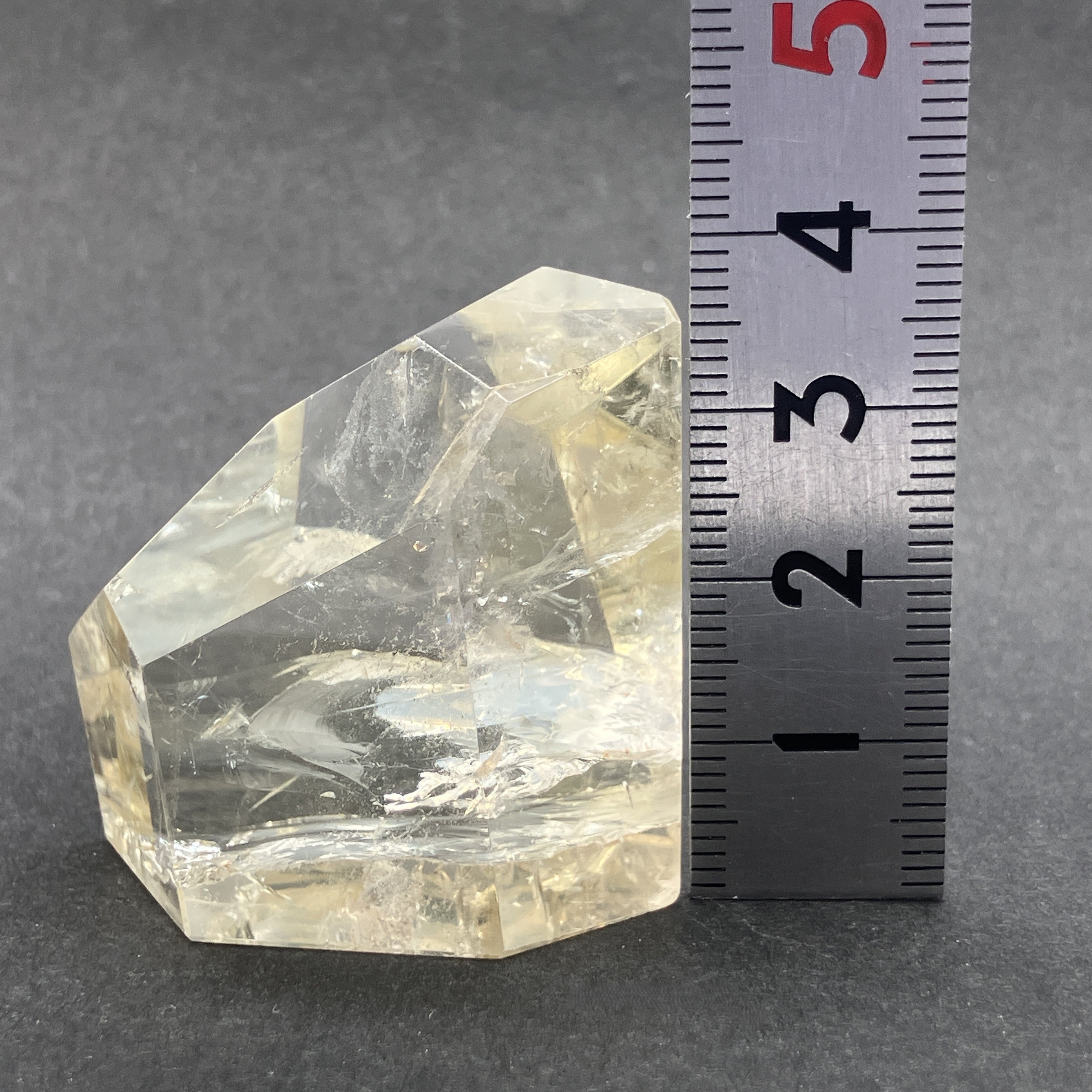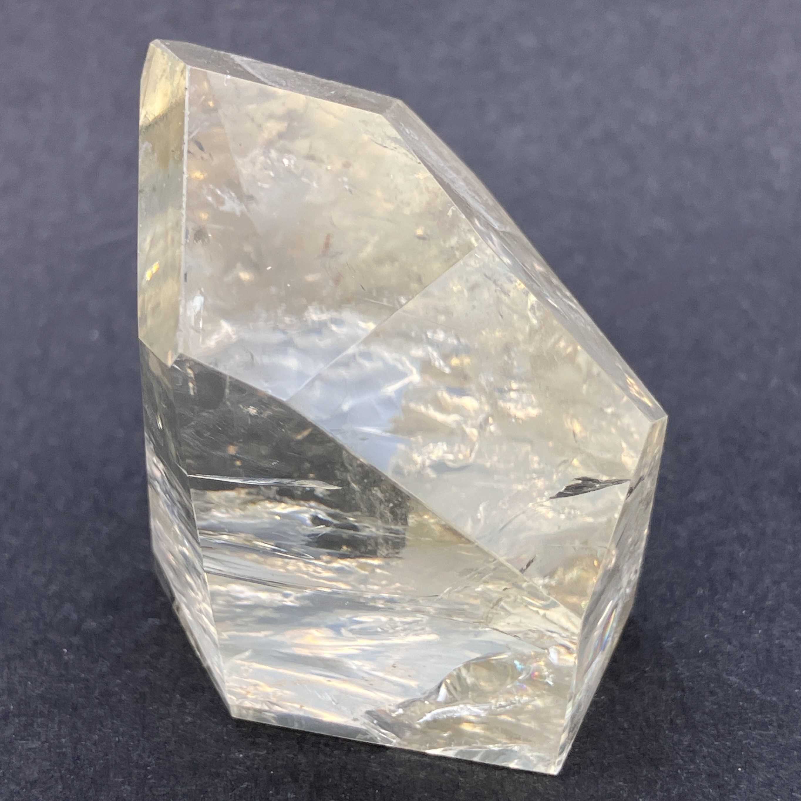 結晶や原石の形に合わせて、不規則な面カットが施された状態。