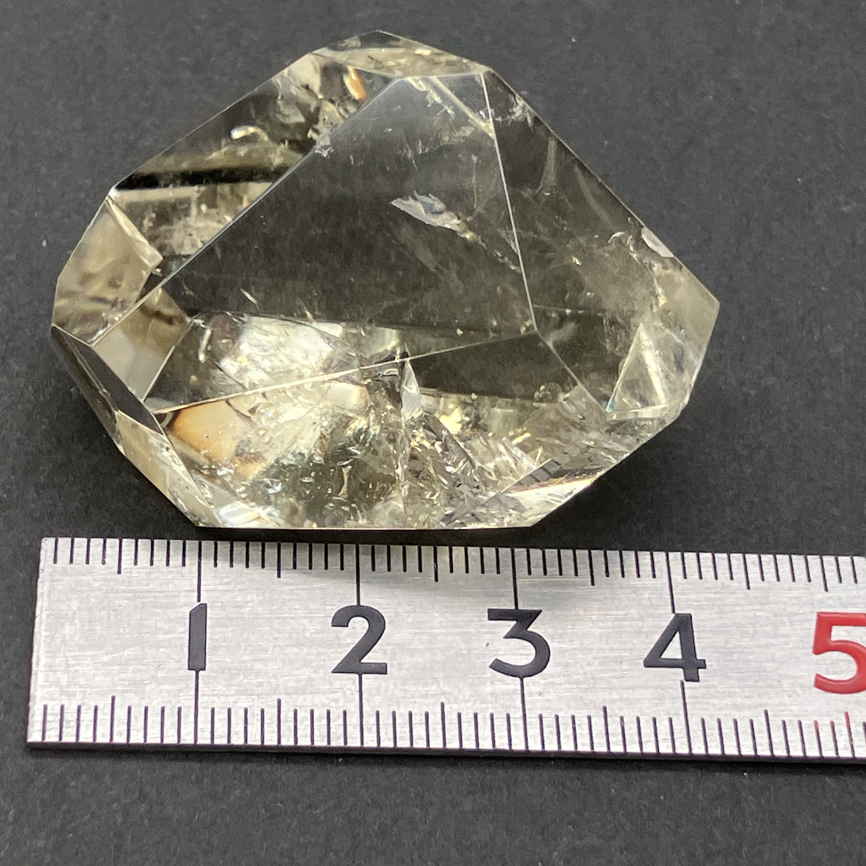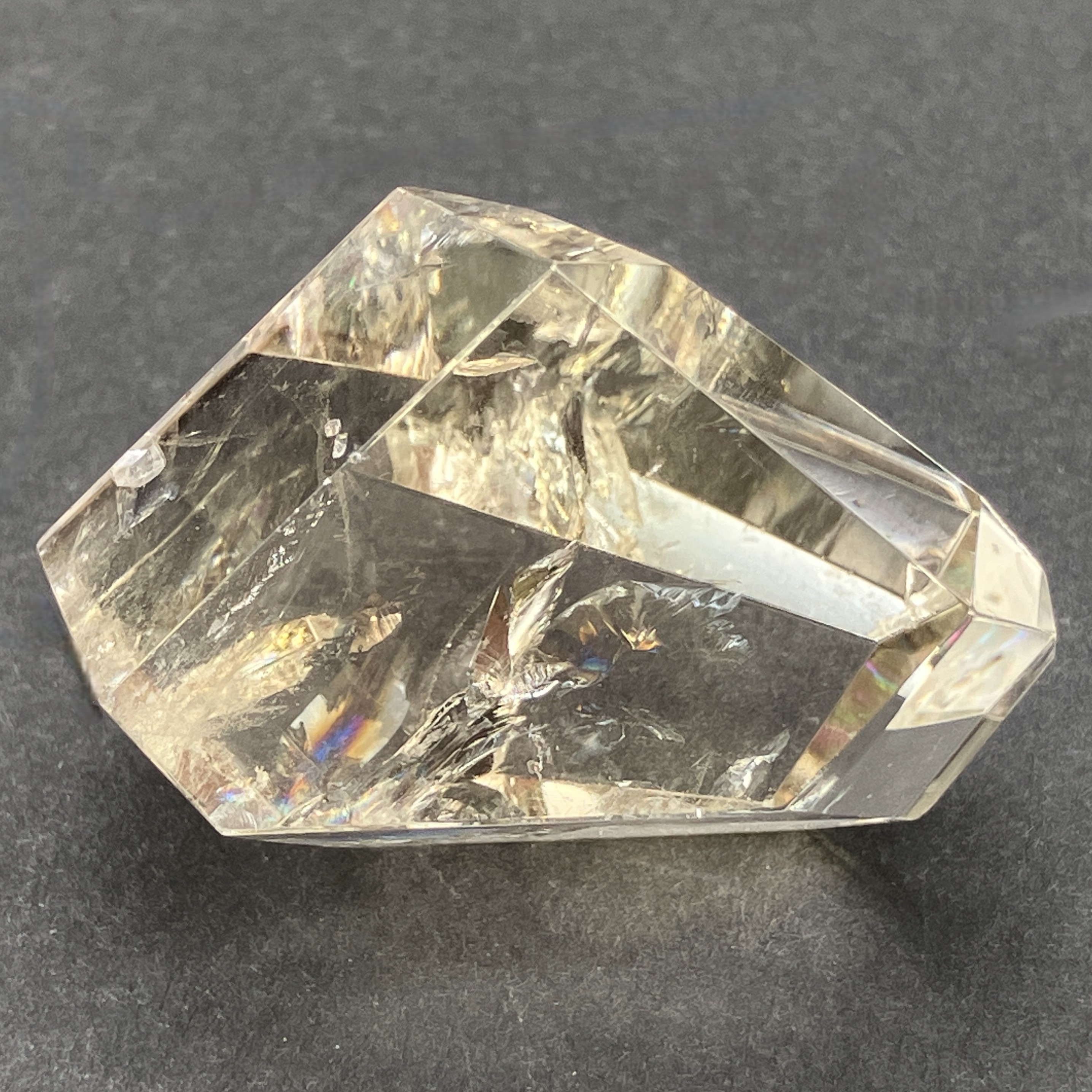 結晶や原石の形に合わせて、不規則な面カットが施された状態。