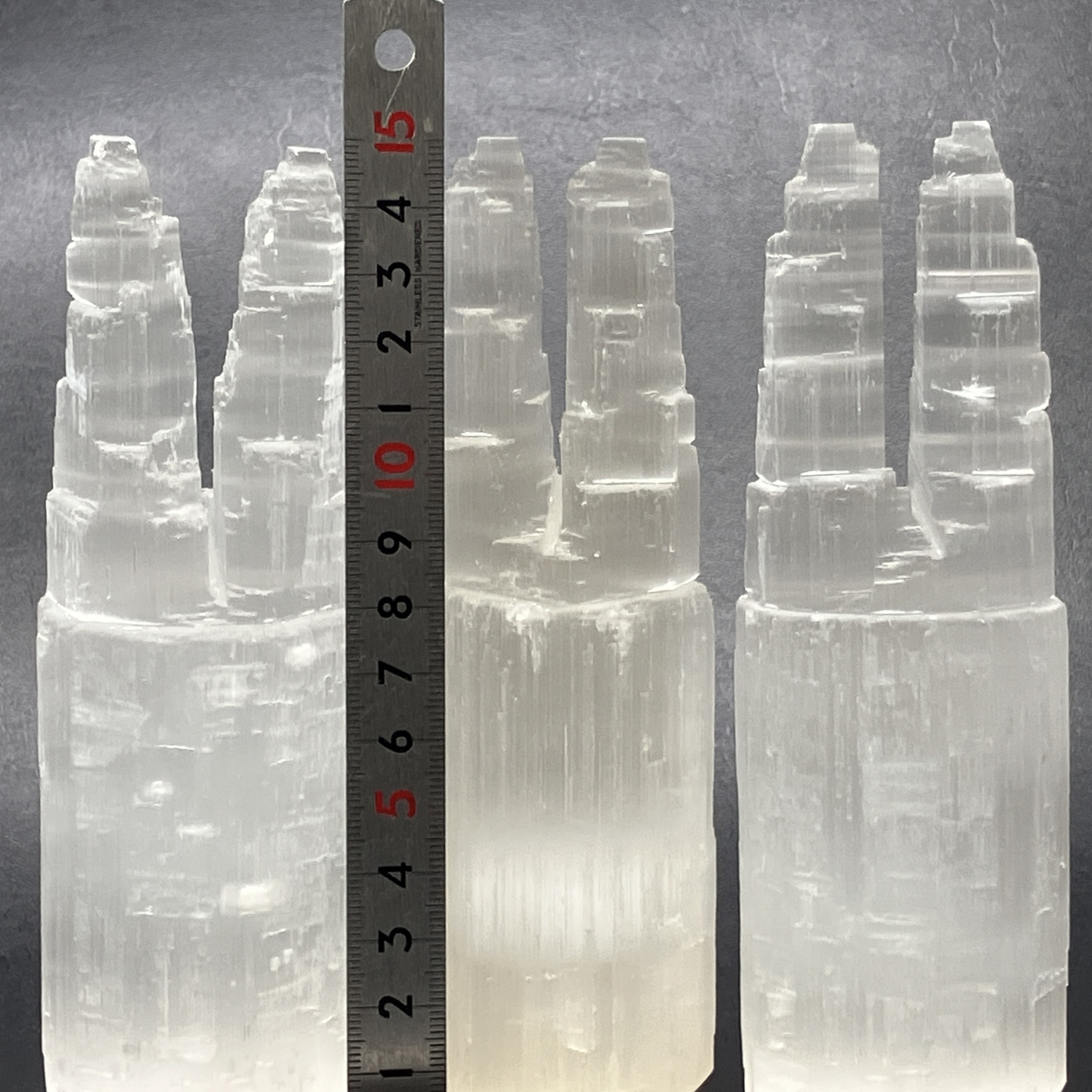 【置物/彫り物】セレナイト タワー(ツイン)15cm No,5141