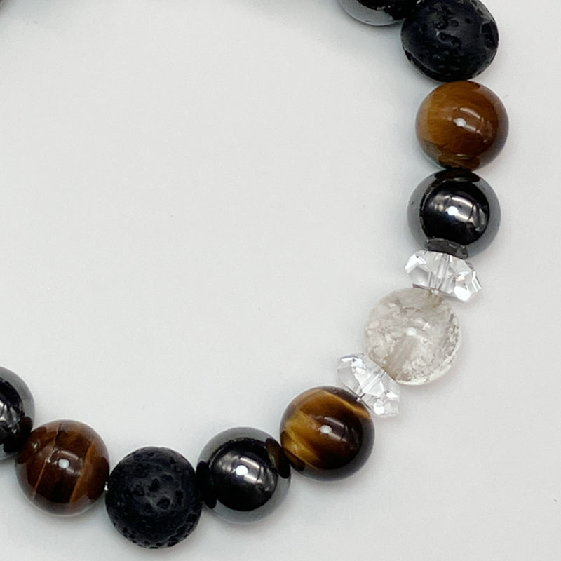 タイガーアイ 10mm×6 溶岩 10mm×3 ヘマタイト 10mm×6 水晶ボタンカット 4*8mm×6 |