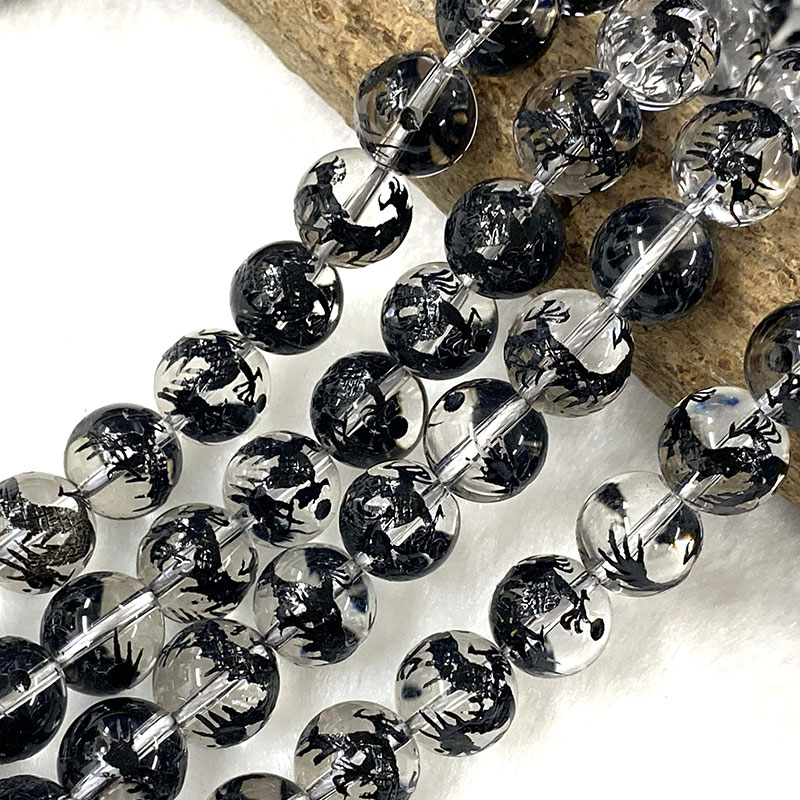 【ビーズ】水晶龍彫ビーズ(ブラック)